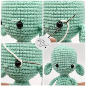 First, I create a straight line on the outer edge of the eye. Then, I bring the yarn back to the center of this line and secure it with a stitch. Simple, right? Try it out, and you’ll see, your toys will be much safer! 😊