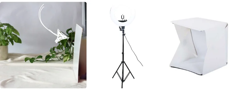 For larger items, you can find a variety of lamps on the market, from budget-friendly to high-end options. There are square, round, big, small, three-legged, bendable, dimmable, warm light, cool light, and so on. When the lighting is right, shadows are soft and not too harsh.