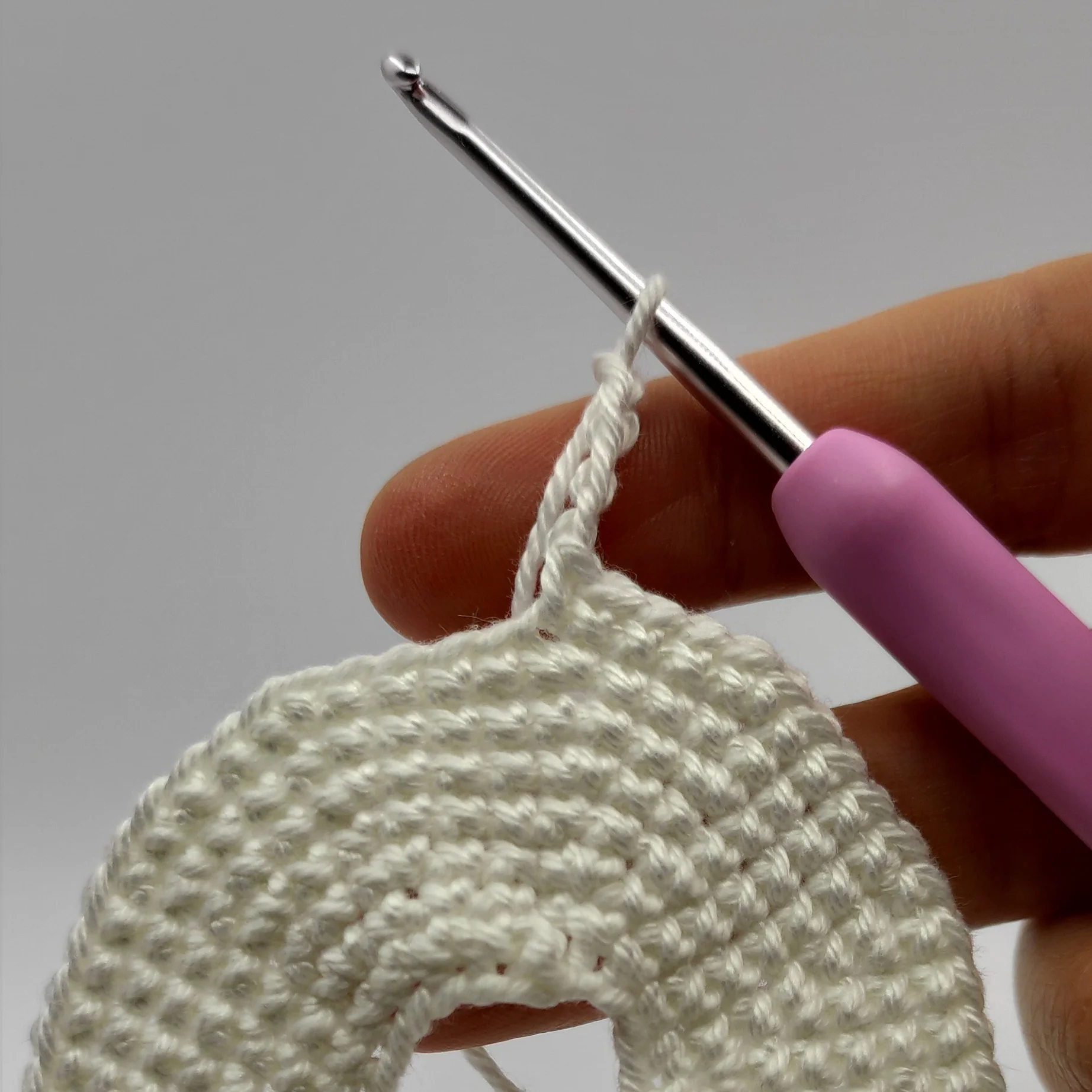 3. round: (2 sc, inc)*2 (8)