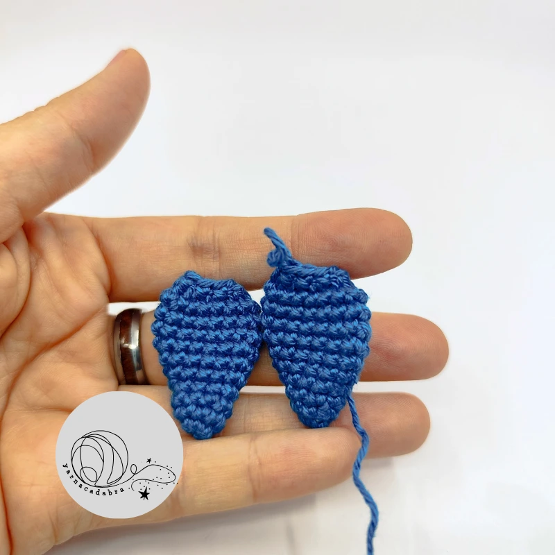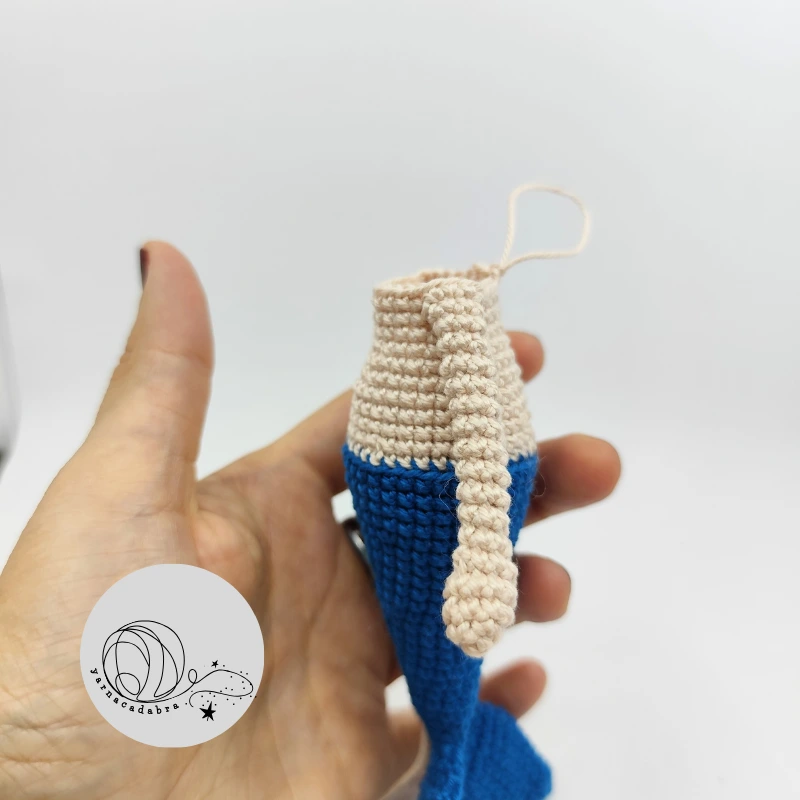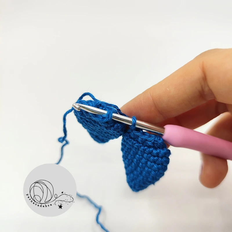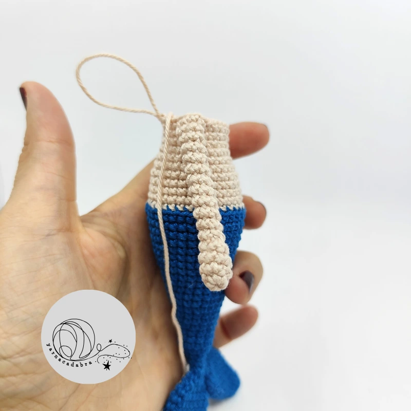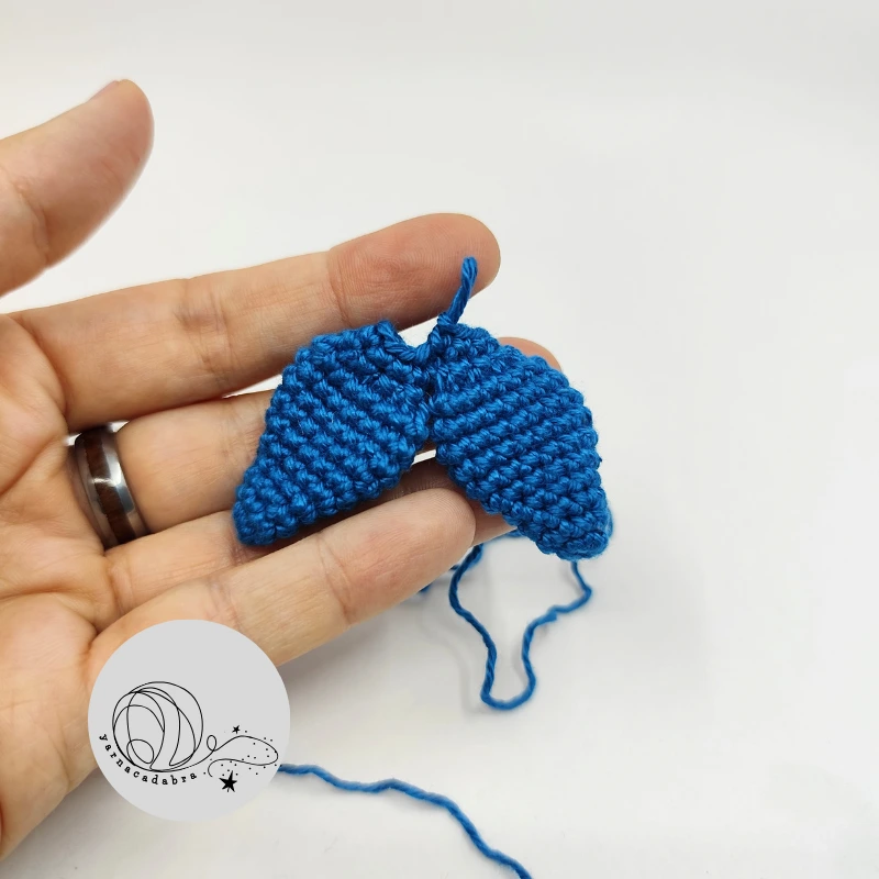 For the first fin, cut the yarn and fasten off. For the second fin, do not cut the yarn. Continue to join the fins and crochet the body.