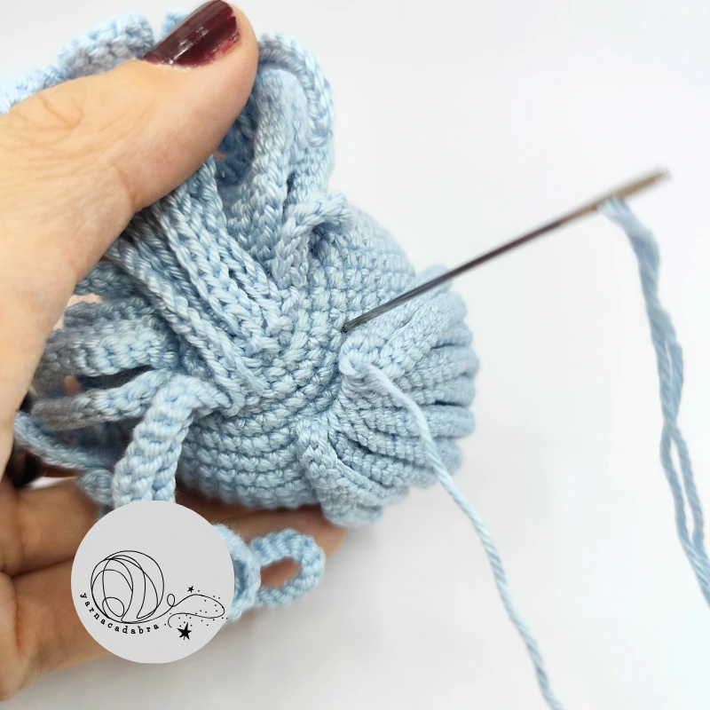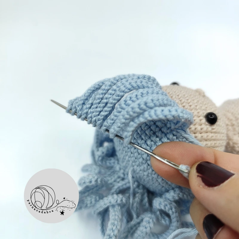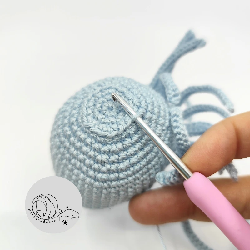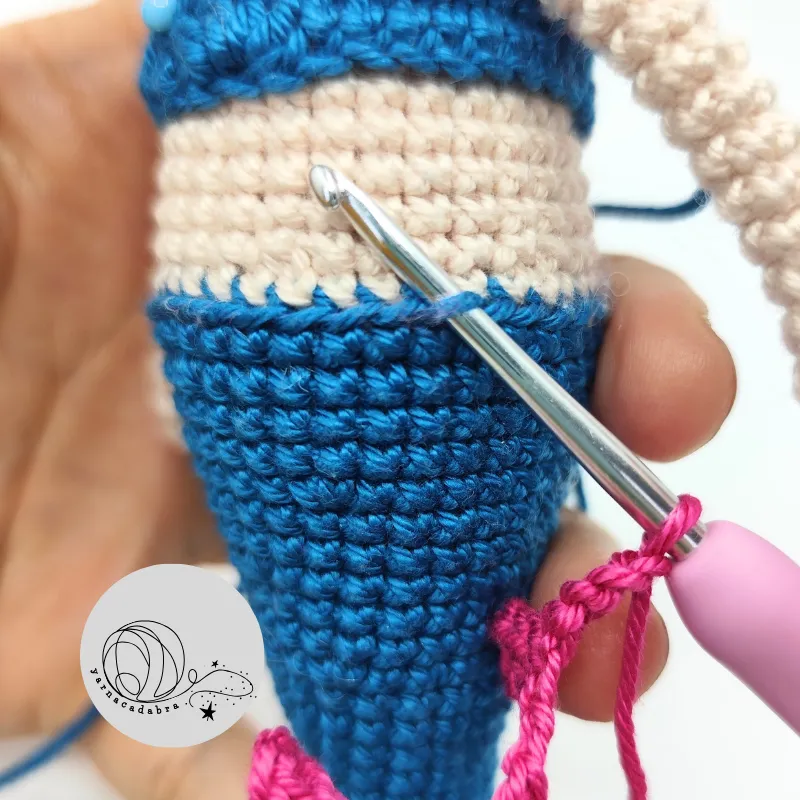 1. 8 sc on the fin, 8 sc on the other fin (16)