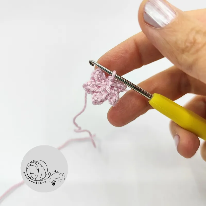 (ch 3, turn, sc, hdc)*5, ch 1, pull the yarn through the sides of all the hdc sides of the star, sl st to the side of the first hdc of the star.