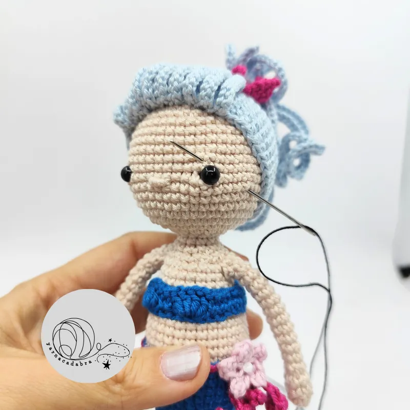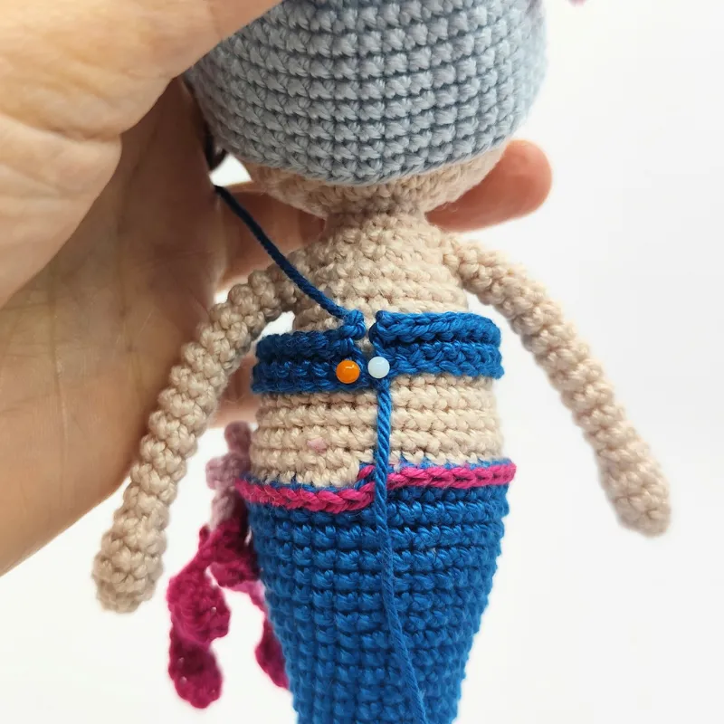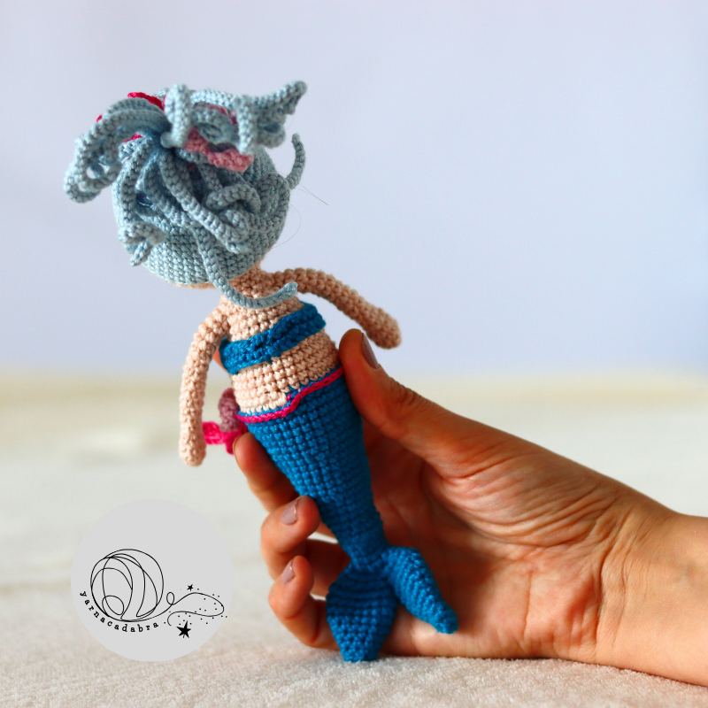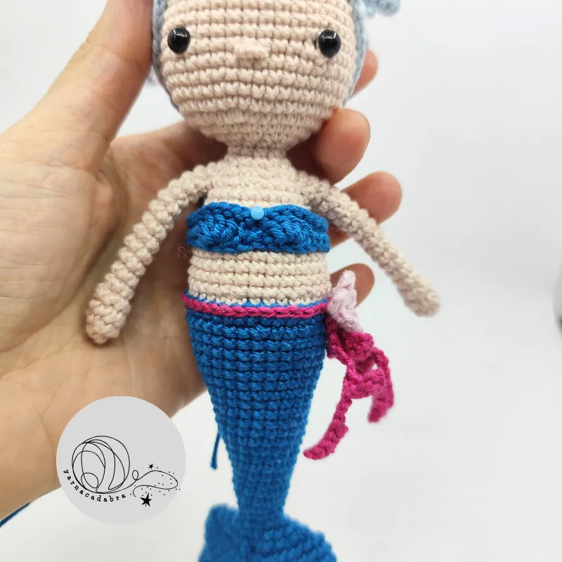This is the perfect project for an adventurous beginner! If you have a little bit of amigurumi experience, meaning you’re comfortable with the basics like a magic ring, single crochet, increases, and decreases, you can absolutely make this mermaid.