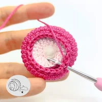 Lightly stuff the flower. Change color to light pink, join the yarn into the first loop of the next st.